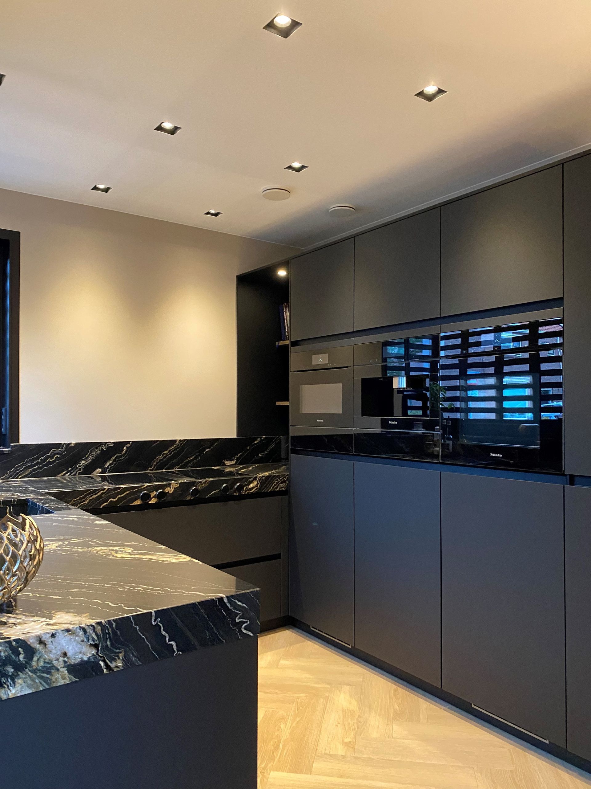 Van een brandweerrode keuken naar een strakke zwarte keuken.