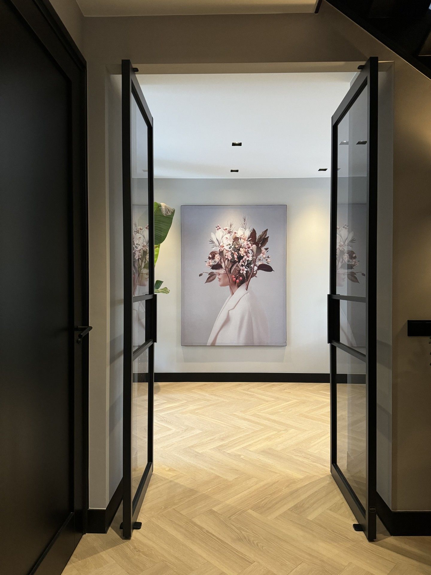Zo hebben we in de hal een doek van 180x135 aan de wand.